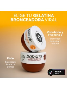 ULTIMAS UNIDADES Gelatina bronceadora idónea para conseguir un bronceado exótico y dorado. Resistente al agua. Con extracto natural de Coco. La acción del acelerador del bronceado permitirá estar moreno durante más tiempo.