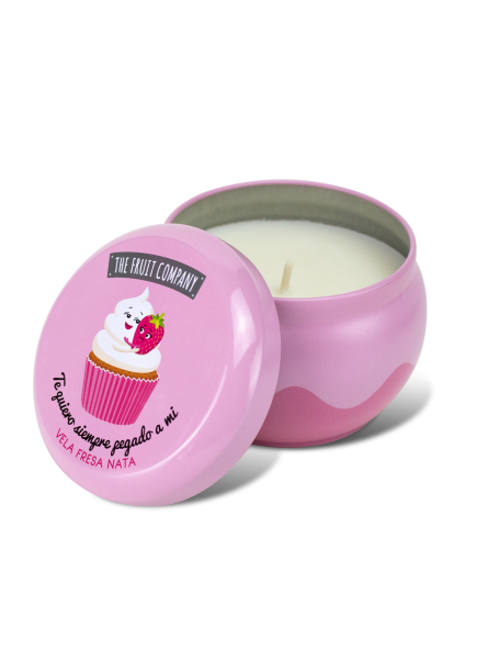 Vela Perfumada Fresa Nata The Fruit Company con cera vegetal, 150gr, 1 mecha y duración de 40 horas. Con extractos naturales.