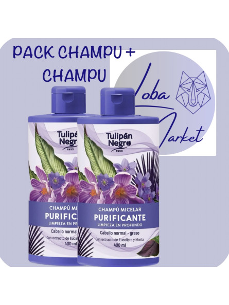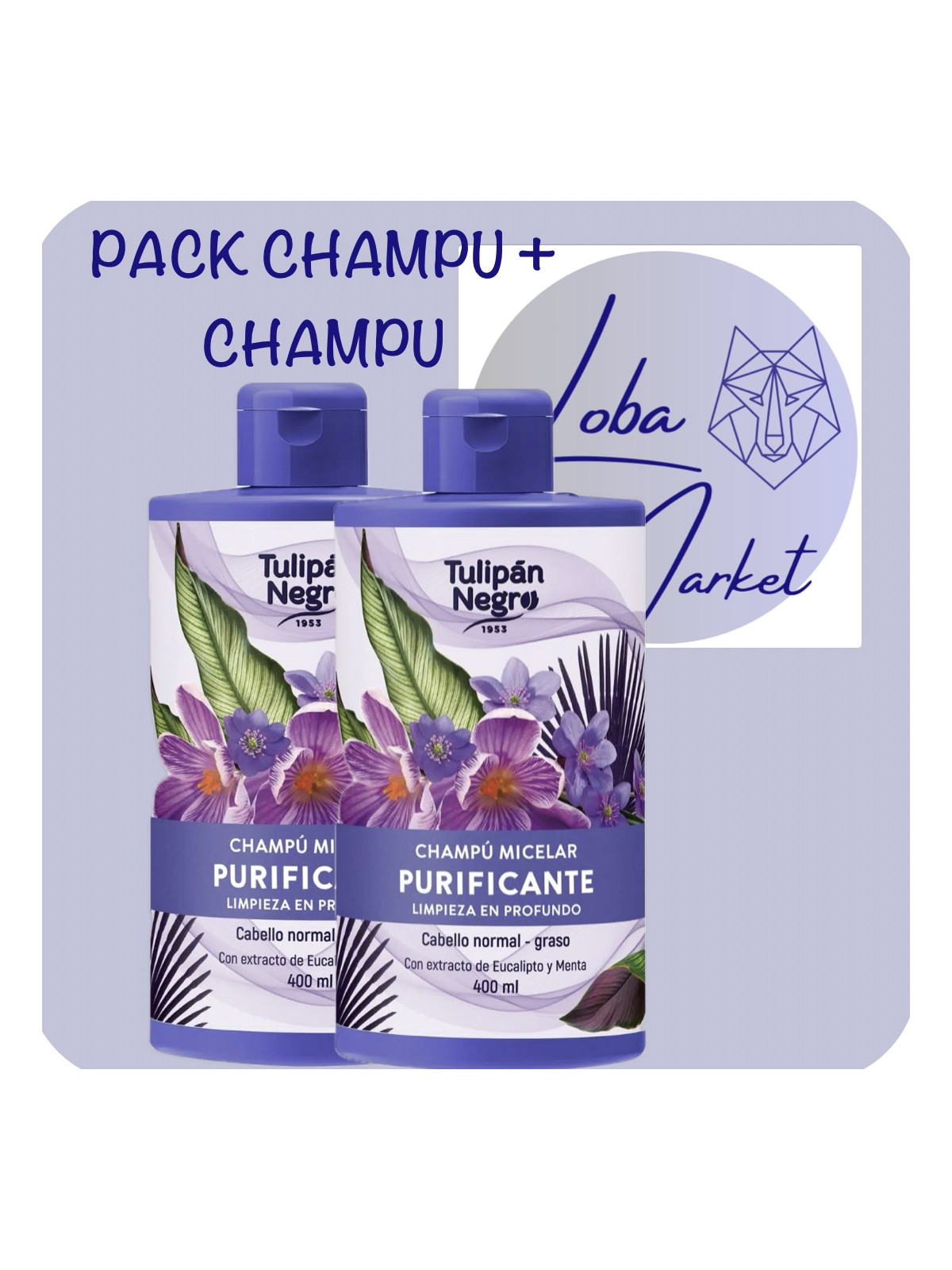 CHAMPU 400ML + CHAMPU 400ML PURIFICANTE - CABELLO NORMAL - GRASO0 - TULIPAN NEGRO