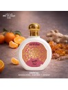 UTUR AL-YAQUT HUB combina la frescura jugosa de la mandarina con un corazón especiado de jengibre, creando una fragacia moderna y vibrante.