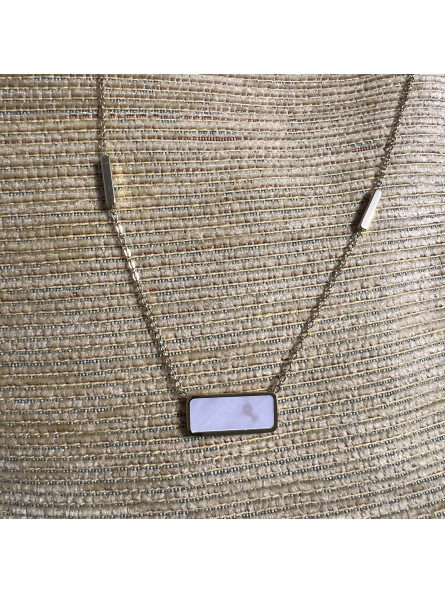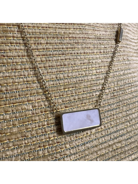 COLLAR ACERO DORADO NACAR RECTANGULO