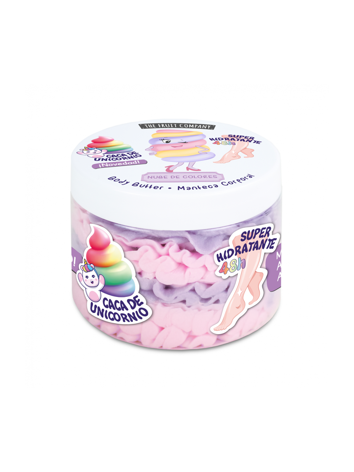 ¡Prepárate para una experiencia sensorial mágica con la Manteca Corporal Nube de Colores The Fruit Company! Su fórmula vegana te transportará a un mundo lleno de arcoíris y unicornios. ¡Literalmente caca de unicornio convertida en una maravillosa manteca corporal!