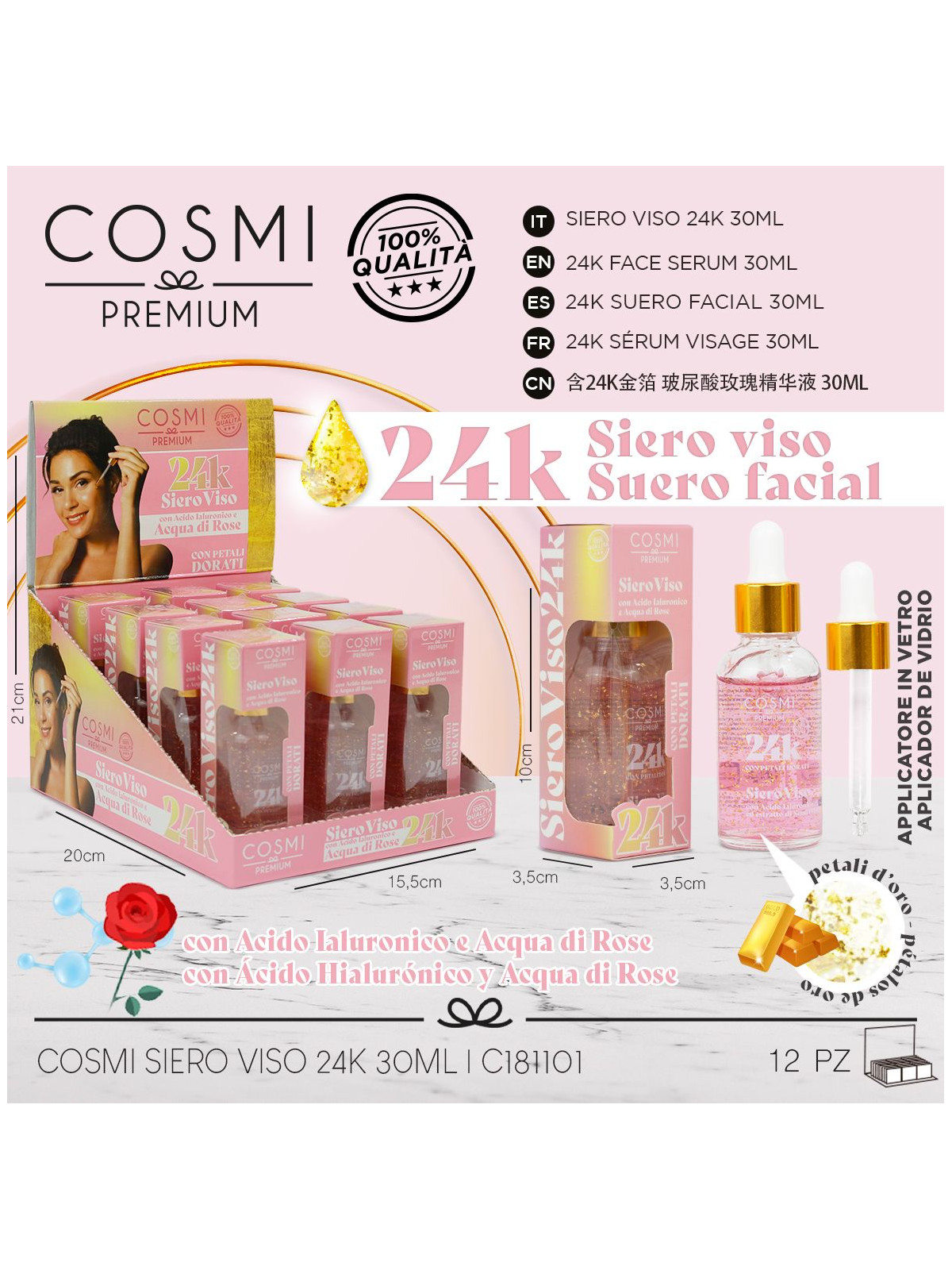 SERUM 24K ACIDO HIALURONICO Y AGUA DE ROSA 30 ML - COSMI