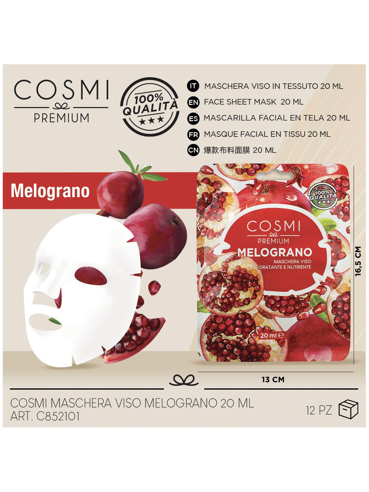 MASCARILLA FACIAL GRANADA HIDRATANTA NUTRE E ILUMINA - COSMI