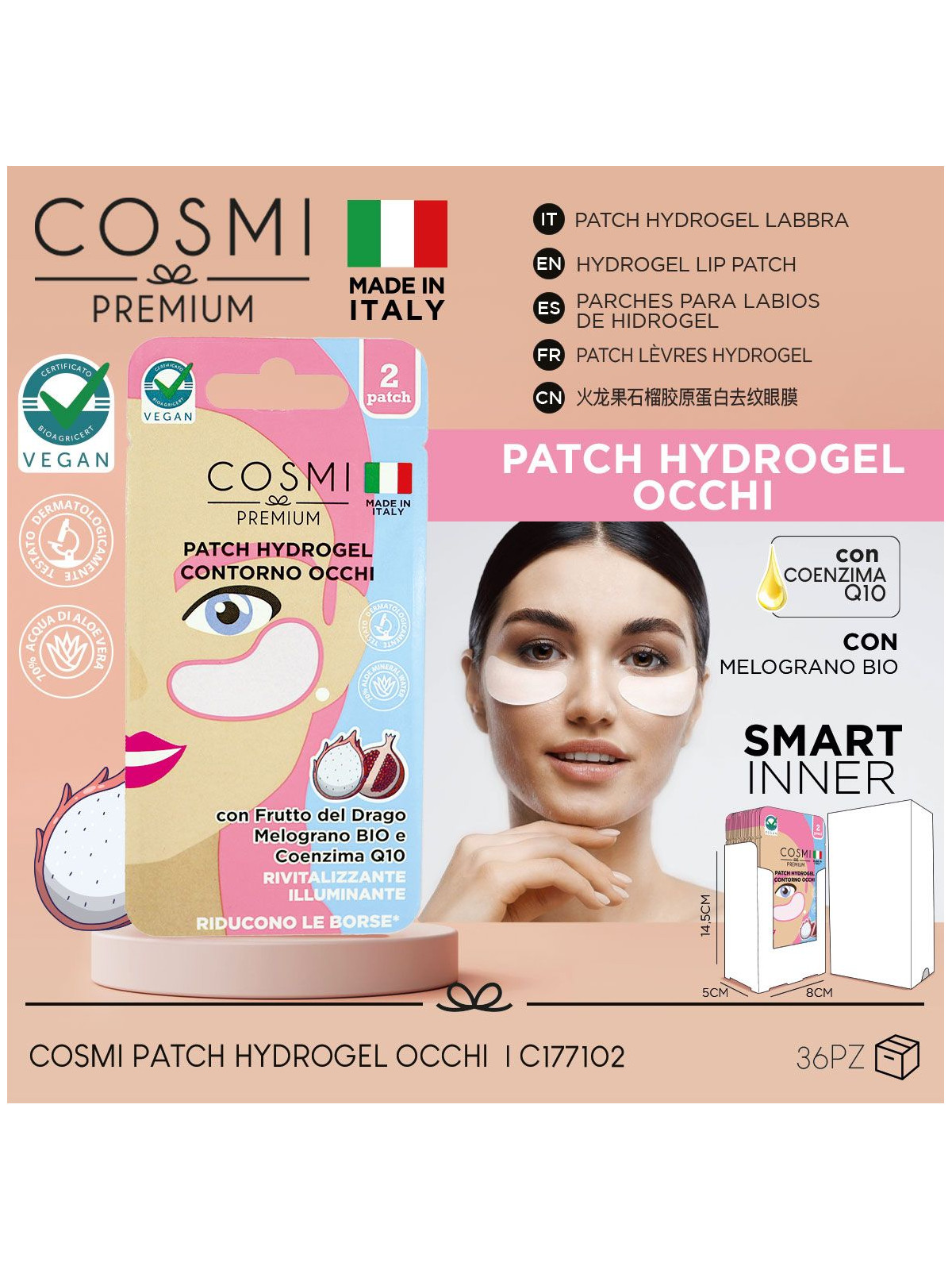 PARCHES OJOS HYDROGEL FRUTA DRAGON GRANADA Y Q10 - COSMI