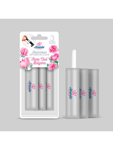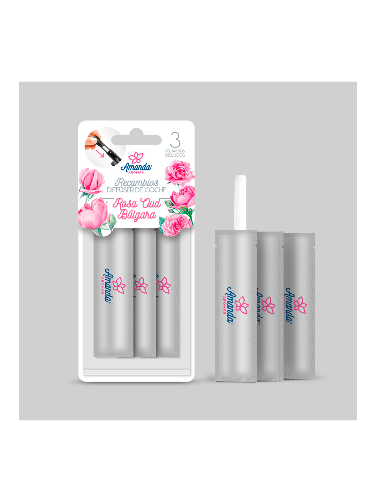 PACK 3 RECAMBIOS DIFUSOR ESENCIA COCHE ROSA OUD BULGARA - AMANDA