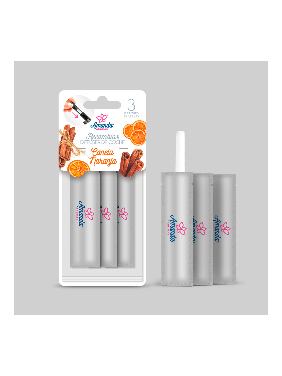 PACK 3 RECAMBIOS DIFUSOR ESENCIA COCHE CANELA NARANJA - AMANDA