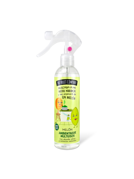 Spray Ambientador de 250 ml con cítrico y frutal aroma a Melón y formulado con extractos naturales. Apto para tejidos, absorbe olores y… ¡No macha!.