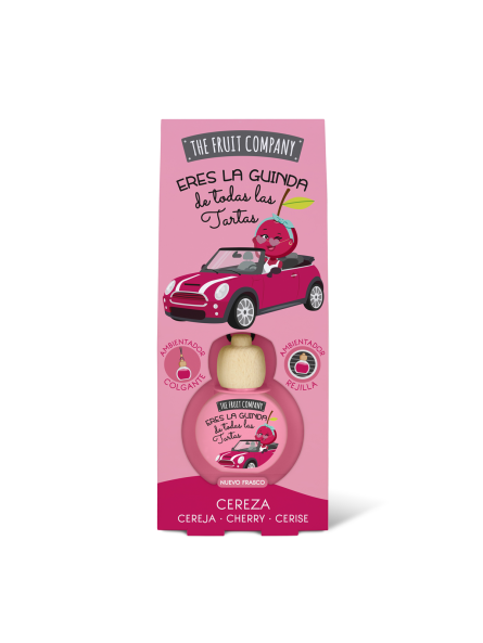 Ambientador de coche con aroma a Cereza con extractos naturales con 2 usos: