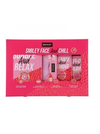 Prepárate para cualquier cosa. Este set de regalo Sence Smiley Face & Chill contiene una mascarilla facial con burbujas purificantes de 23 ml, unas tiras limpiadoras para los poros de la nariz, una mascarilla labial suavizante de hidrogel de 6 ml y una mascarilla exfoliante suavizante de 10...