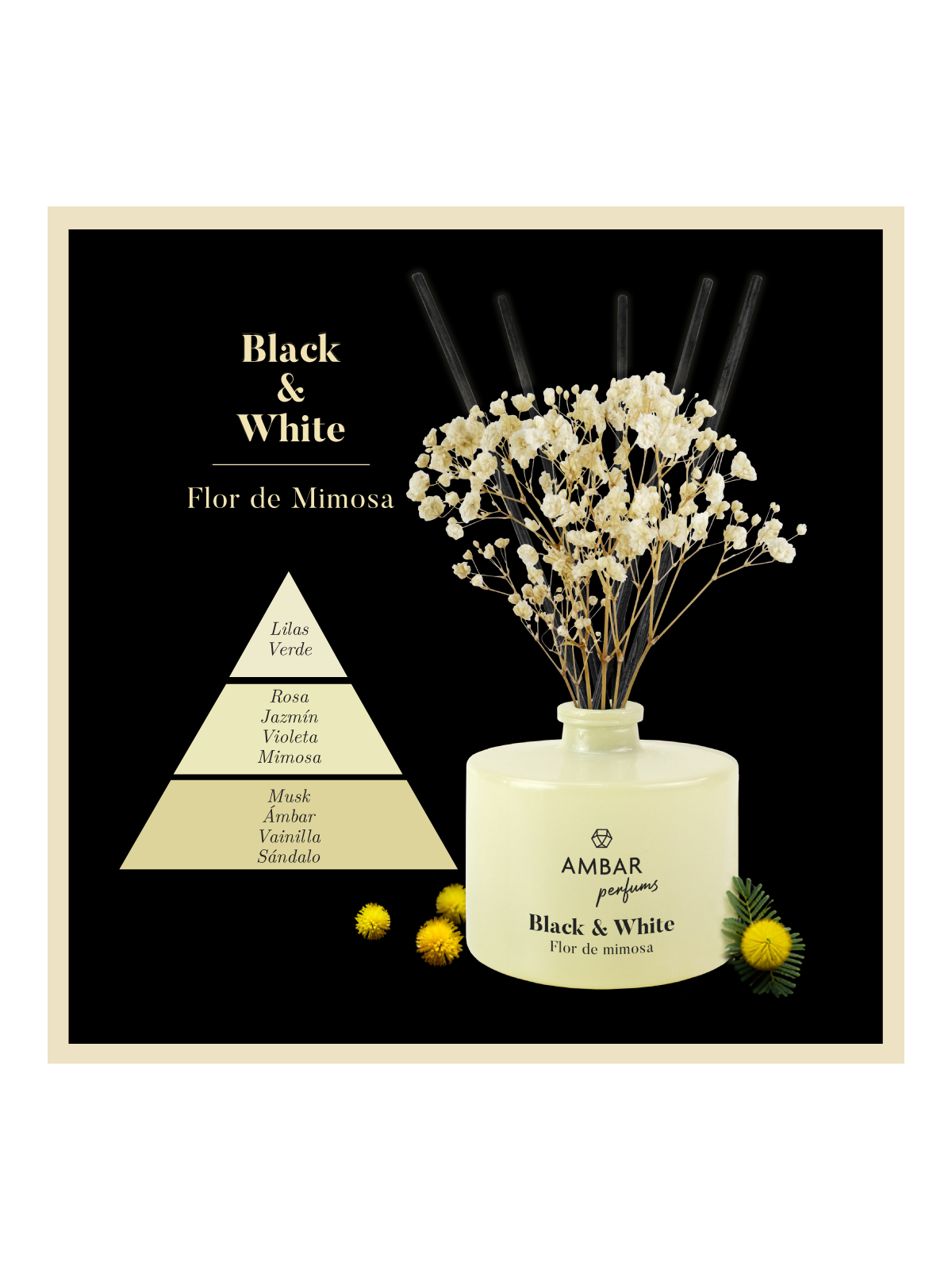 AMBIENTADOR MIKADO FLOR DE MIMOSA BLACK & WHITE 40ML - AMBAR PERFUMS