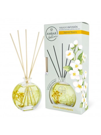 Ambientador Mikado Jazmín Blanco AMBAR Botanic 75 ml con infusión de hierbas naturales. Con Efecto Estimulante que activa cuerpo y mente, y propiedades de la Aromaterapia.