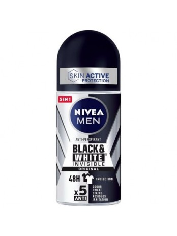 Men Black & White Invisible Original, Desodorante Roll-On 50 ml de Nivea.Su fórmula ha sido desarrollada con la ayuda de expertos en productos textiles (“Hohenstein International Textile Institute”) con el fin de ofrecer una potente protección anti-transpirante que evita la aparición de...