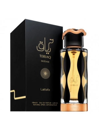 Teriaq Intense de Lattafa Perfumes es una fragancia de la familia olfativa Oriental Especiada para Hombres y Mujeres. Esta fragrancia es nueva. Teriaq Intense se lanzó en 2024. La Nariz detrás de esta fragrancia es Quentin Bisch. Las Notas de Salida son azafrán y bergamota; las Notas de Corazón son Plum Liquor y canela; las Notas de Fondo son ámbar, haba tonka y benjuí.