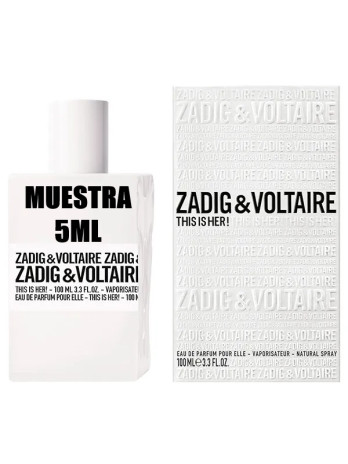 Zadig&Voltaire Her Edp Perfume femenino oriental de vainilla. Para mujeres auténticas, elegantes y espontáneas que buscan la libertad de expresión, la rebeldía y no conocen fronteras. Combina la exaltación de la feminidad con la vitalidad, la fuerza y el poder. Este perfume incita a ser uno mismo, a romper barreras y marcar la diferencia en el día a día, teniendo como estilo de vida lo imprevisible. Gran intensidad de aroma y durabilidad. Su frasco de color blanco simboliza la belleza y la dulzura. Notas aromáticas: •grupo olfativo: oriental vainilla para mujeres •salida: jazmín sambac (sampaguita), flor del árbol de la seda (acacia de Constantinopla) y pimienta rosa •corazón: castaña, vainilla y crema batida •fondo: madera de cachemira y sándalo Rompe barreras, sé irresistible.