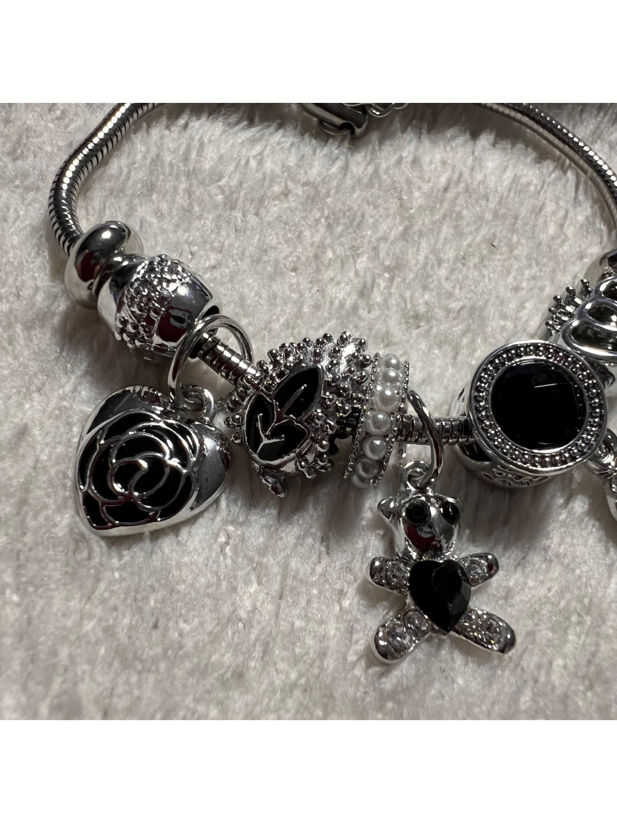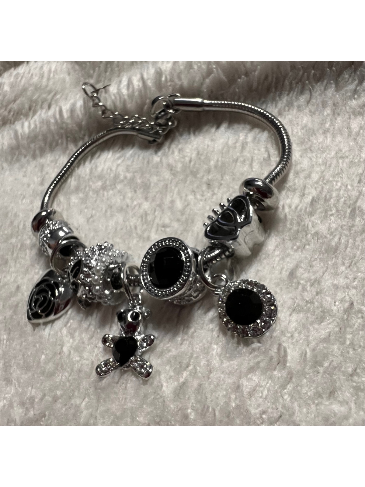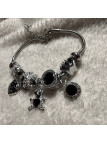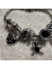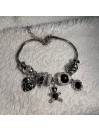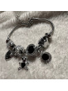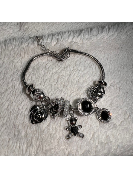 PULSERA ACERO PLATA CHARM NEGRO CORAZON MARIPOSA OSO