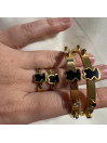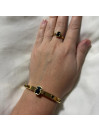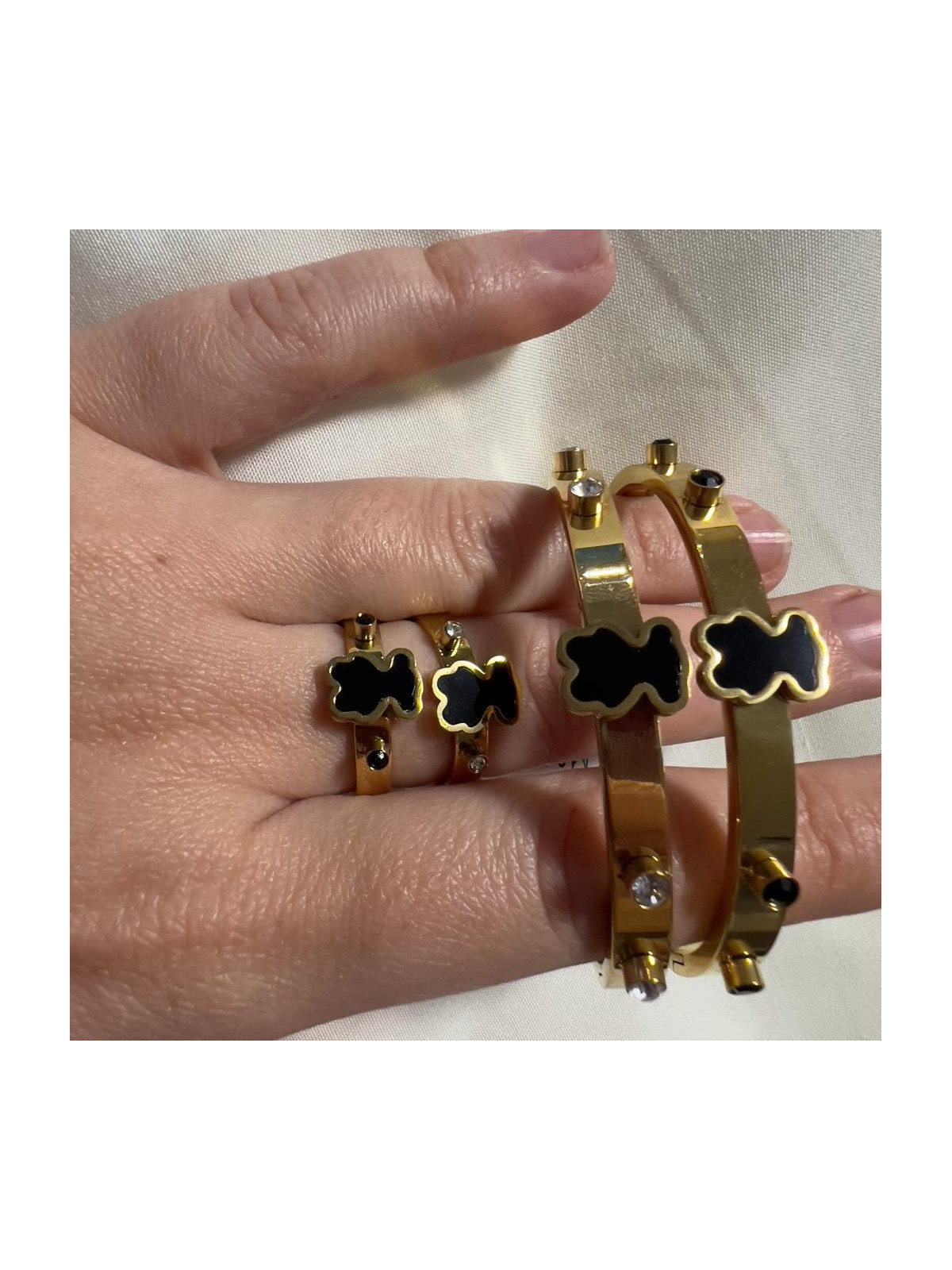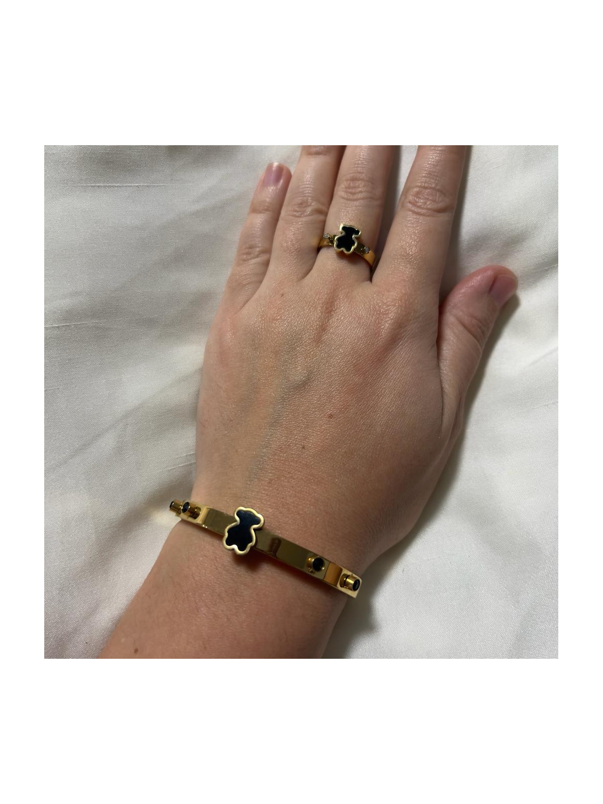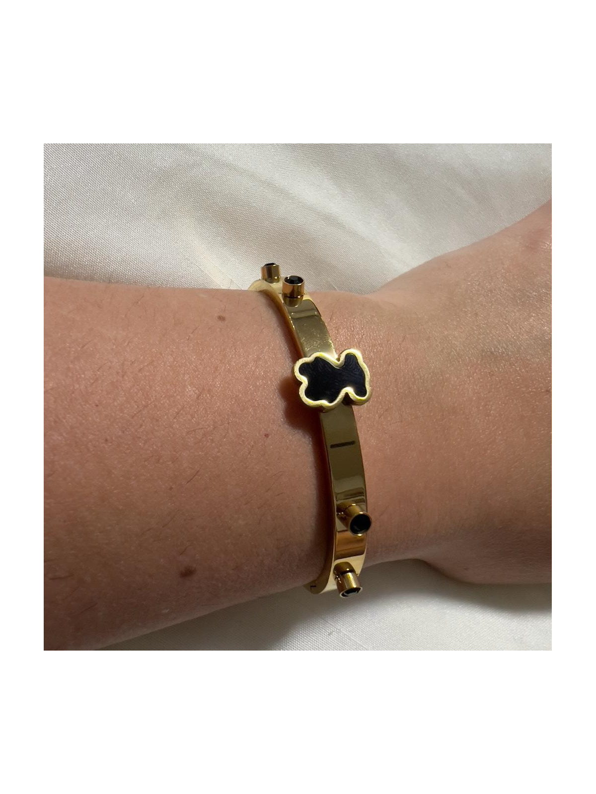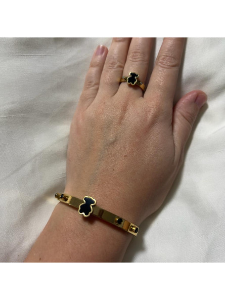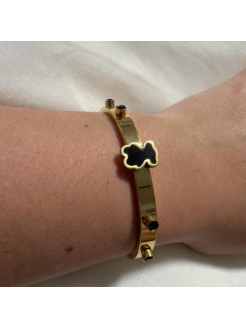 PULSERA ACERO DORADO OSITO BRILLANTES NEGROS