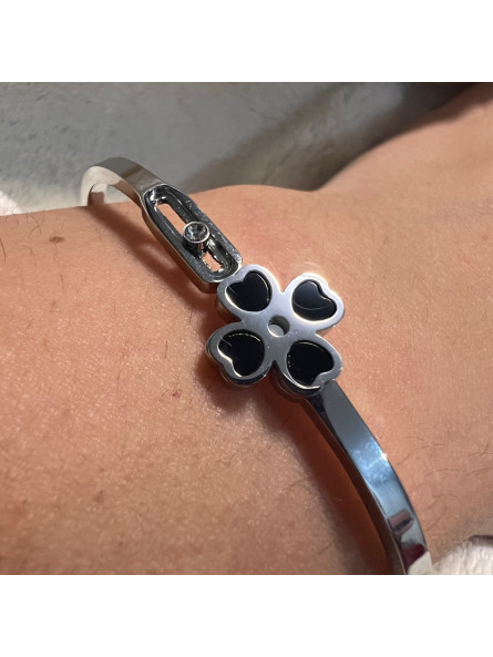 PULSERA ACERO PLATEADA CORAZONES NEGROS