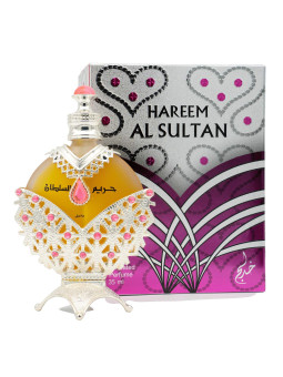 Hareem Al Sultan Silver de Khadlaj Perfumes es una fragancia de la familia olfativa para Hombres y Mujeres. Las Notas de Salida son rosa y almizcle blanco; las Notas de Corazón son ylang-ylang y romero; las Notas de Fondo son madera de oud y ámbar.