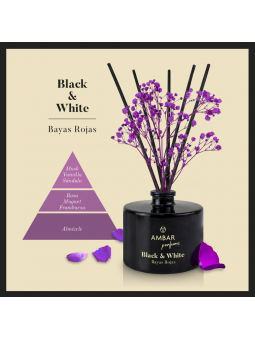 Mikado Bayas Rojas Black & White El mikado Bayas Rojas de nuestra colección Black & White te envuelve en una deliciosa mezcla de frutas rojas y flores frescas. Con notas de salida de frambuesa y mora grosella, un corazón floral de muguet y un acabado vibrante, esta fragancia aporta un...