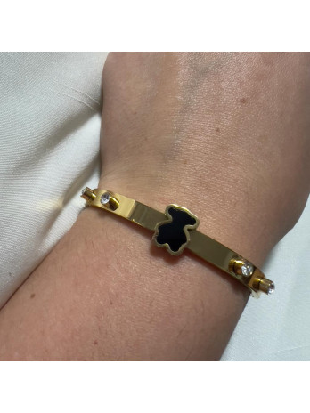 ANILLO ACERO DORADO OSITO NEGRO BRILLANTE