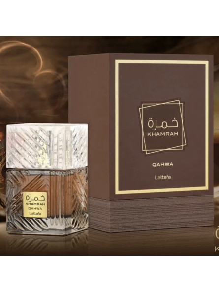 Khamrah de Lattafa Perfumes es una fragancia de la familia olfativa Aromática Especiada para Hombres y Mujeres. Esta fragrancia es nueva. Khamrah se lanzó en 2022. Las Notas de Salida son canela, nuez moscada y bergamota; las Notas de Corazón son dátiles, praliné, nardos y Mahonial; las Notas de Fondo son vainilla, haba tonka, benjuí, Amberwood, mirra y Akigalawood.