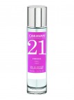 La fragancia número 21 de Caravan Fragancias te sumerge en un mundo de frescura y elegancia, una sinfonía olfativa que cautiva los sentidos desde el primer instante. Nuestra fragancia comienza con notas de salida de jugosa manzana, refrescante lima y dulce melocotón. Estas notas iniciales te transportarán a un jardín lleno de frutas maduras y cítricos frescos. En el corazón de esta fragancia, encontrarás una armoniosa combinación de delicadas flores blancas. El jazmín, la rosa y la freesia se entrelazan para crear un bouquet floral sofisticado y envolvente. Finalmente, nuestra fragancia se asienta en una base cálida y sensual, donde el sándalo, el musk y el ámbar se unen para crear una estela de elegancia y sofisticación. El sándalo aporta una nota terrosa y reconfortante, el musk añade una sensualidad sutil y el ámbar envuelve todo con su calidez y profundidad, dejando una estela duradera y memorable que perdura en la piel y en la memori