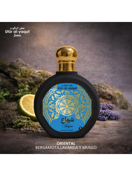 Utur Al-Yaqut SHUJAE Perfume de hombre EDP de 100ml. Shujae es una fragancia oriental marcada por la energía brillante de la bergamota. Su corazón aromático de lavanda aporta elegancia y equilibri, mientras que el fondo de musgo añade profundidad y un carácter envolvente. Un perfume sofisticado, firme y con la esencia clásica de la perfumería árabe. Disfruta al máximo de tu fragancia aplicándola directamente sobre la piel, preferiblemente a unos 15–20 cm de distancia. Rocía en los puntos de pulso - como muñecas, cuello, detrás de las orejas o interior de los codos - para potenciar su fijación y permitir que el aroma se desarrolle por completo. Para una mayor duración, úsala sobre piel bien hidratada y, si lo deseas, aplica una ligera pulverización en la ropa, evitando tejidos delicados. Evita frotar las muñecas tras la aplicación para no alterar la evolución natural del perfume. Utilízalo en tu rutina diaria o en momentos especiales: cada fragancia está diseñada para acompañarte con una estela elegante y envolvente durante todo el día.