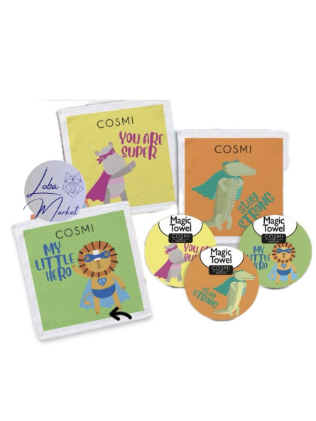 ¡La toalla que se abre como por arte de magia! Magic Towel es el compañero ideal para tus aventuras. Simplemente sumérjala en agua y verá que esta pequeña toalla comprimida se expande al instante. Compacto y lindo, es perfecto para viajes y momentos en los que necesitas una toalla en un instante. ¡Añade un toque de magia a tus días!