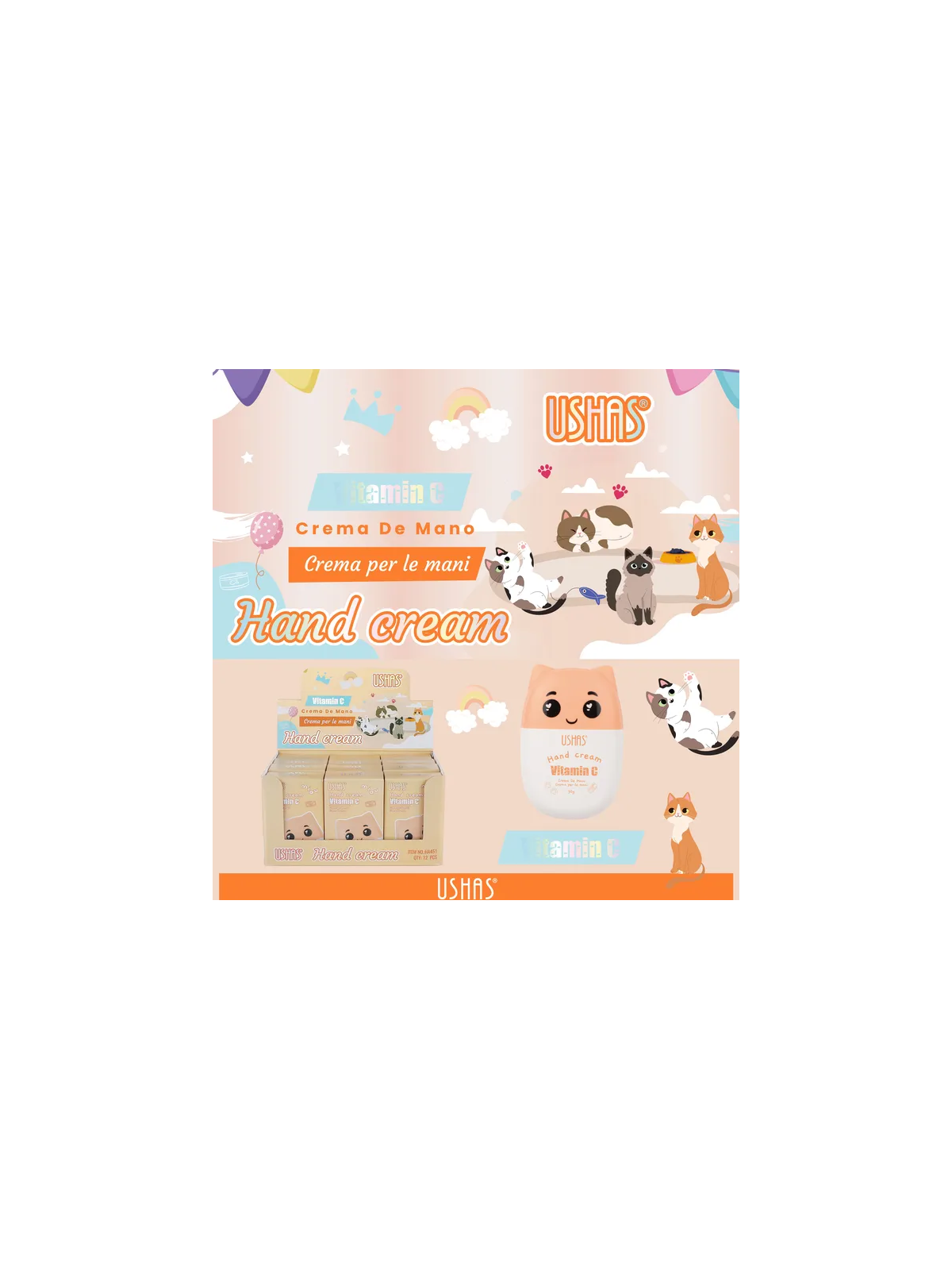 CREMA DE MANOS VITAMINA C GATITO KAWAI - USHAS
