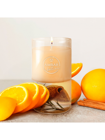 Descubre el cálido abrazo de la Vela Naranja & Canela Ambar Botanic, una combinación que une la dulzura cítrica de la naranja con el toque especiado y reconfortante de la canela.
