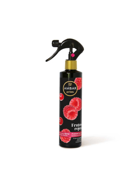 Ambientador líquido en spray. Spray Absorbe Olores Frutos Rojos. Elimina los malos olores, especial tejidos, gran capacidad de pulverización. Calidad Premium. Difusor Natural/Sin Gas. Usos: Baño, tabaco, zona mascotas, cocina, tejidos.