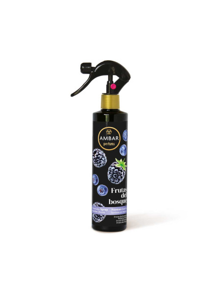 Ambientador líquido en spray. Spray Absorbe Olores Frutas del Bosque. Elimina los malos olores, especial tejidos, gran capacidad de pulverización. Calidad Premium. Difusor Natural/Sin Gas. Usos: Baño, tabaco, zona mascotas, cocina, tejidos.