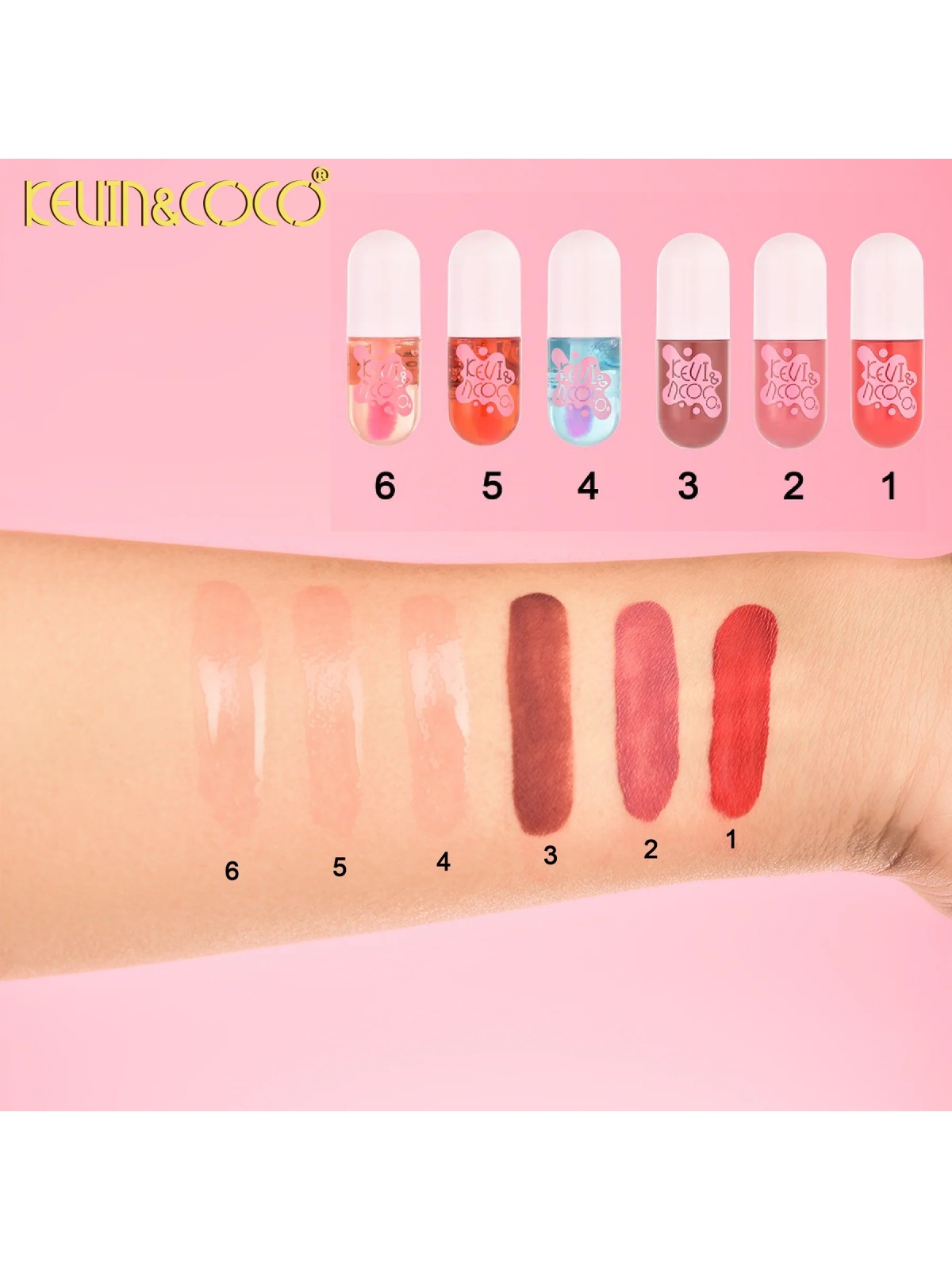 SET 6 BRILLOS LABIALES VASO - KEVIN COCO