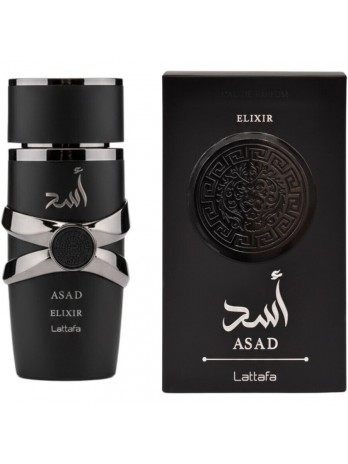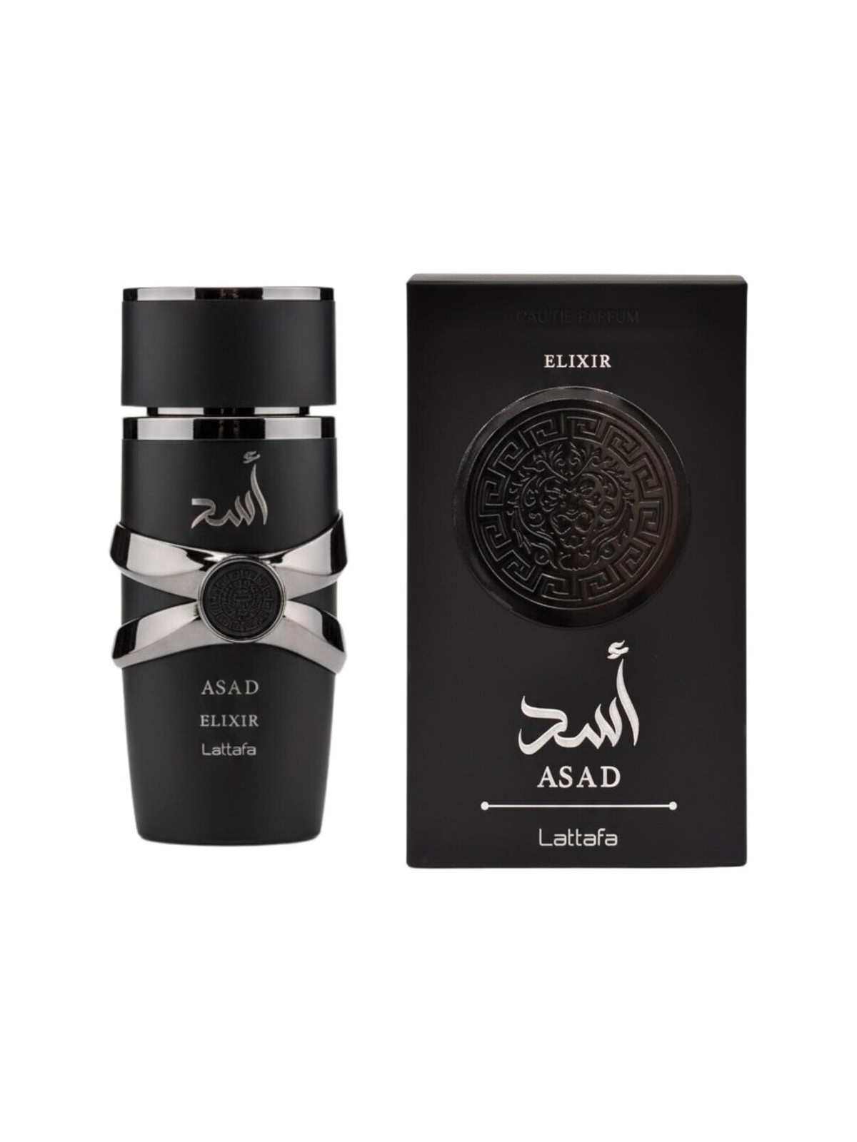 Asad Elixir de Lattafa Perfumes es una fragancia de la familia olfativa Oriental para Hombres. Esta fragrancia es nueva. Asad Elixir se lanzó en 2025. Las Notas de Salida son pimienta rosa, azafrán y toronja (pomelo); las Notas de Corazón son tabaco, vainilla y cedro; las Notas de Fondo son Incienso, ámbar ligero, pachulí y cachemira.