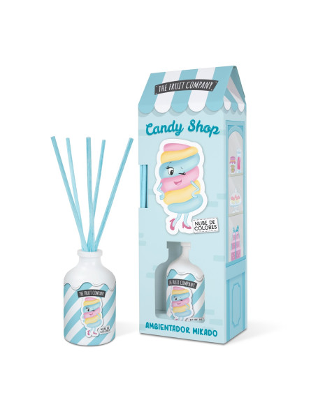 ¡Da la bienvenida a tu hogar al universo dulce de Candy Shop! Con el Ambientador Mikado Nube de Colores Candy Shop The Fruit Company, tu hogar se llenará de una deliciosa fragancia durante más de 60 días. Con extractos naturales y 0% alcohol, su ambientación constante e increíble aroma serán como un paseo mágico por un mundo lleno de dulces y golosinas. ¡Prepárate para sumergirte en un arcoíris de aromas que te alegrarán el día y te hará sentirte en las nubes!