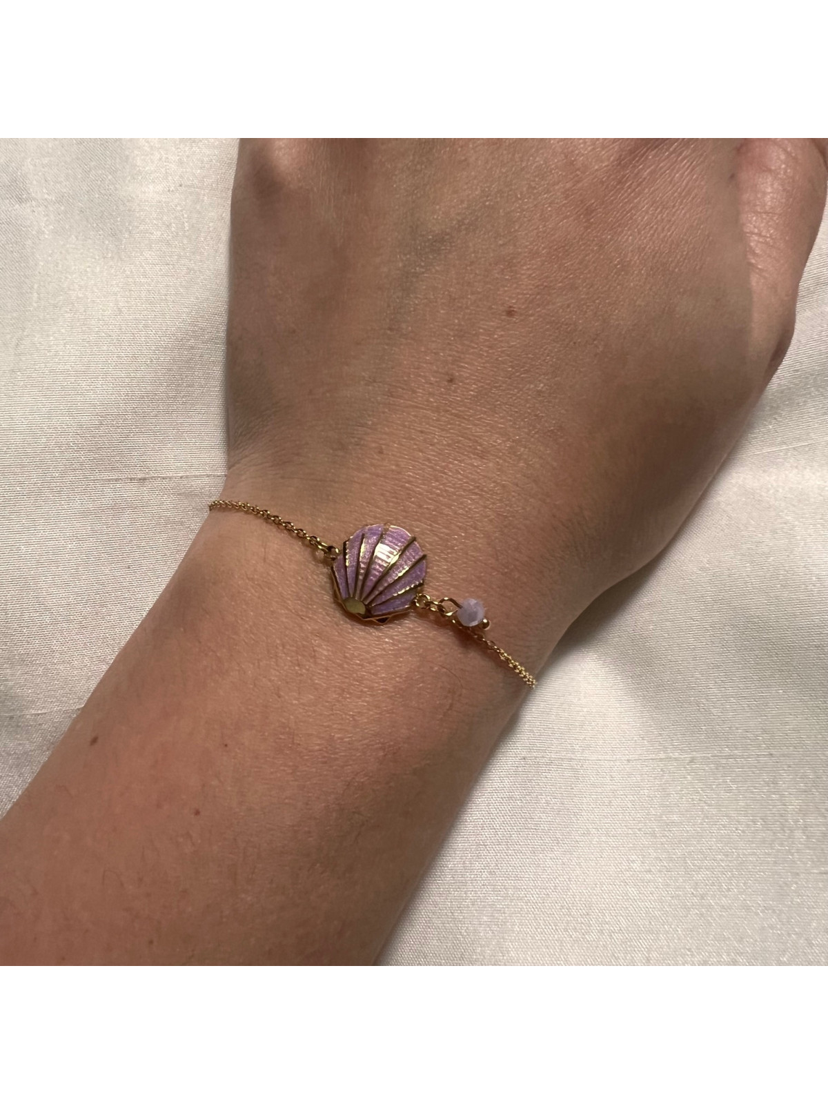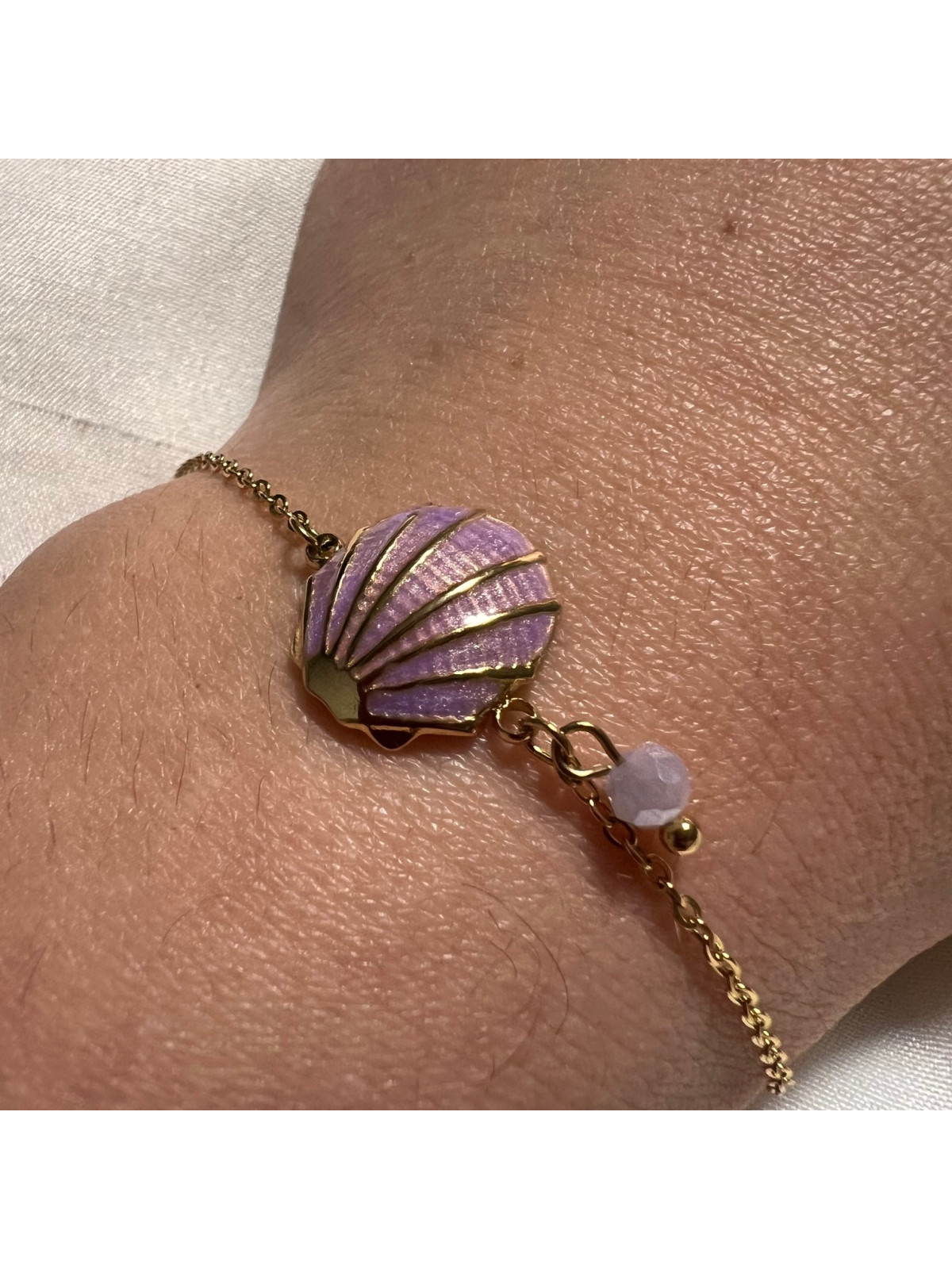 PULSERA ACERO DORADA CONCHA MORADA